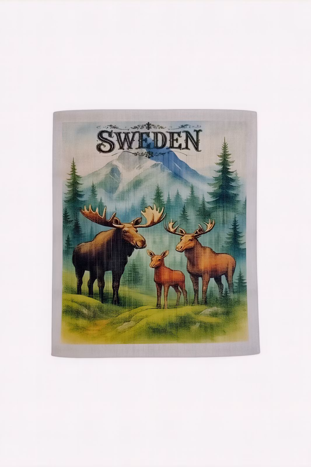 Dieses Spültuch zeigt eine ruhige und stimmungsvolle Illustration einer Elchfamilie in der schwedischen Wildnis. Mit hohen Kiefern, weichen Bergsilhouetten und einer saftig grünen Landschaft fängt das Motiv die Essenz der schwedischen Natur ein – ruhig, kraftvoll und zeitlos. Ein perfektes Souvenir für Naturliebhaber und alle, die die skandinavische Tierwelt schätzen.