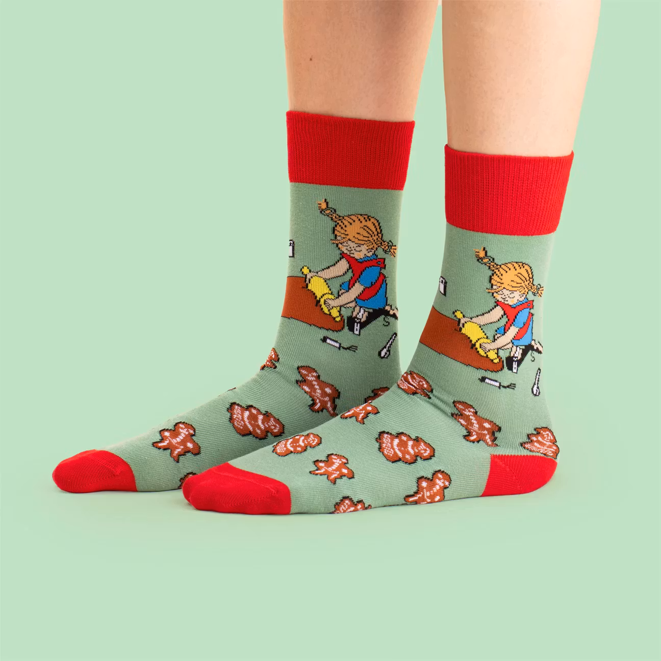 Socken Pippi backt Pfannkuchen