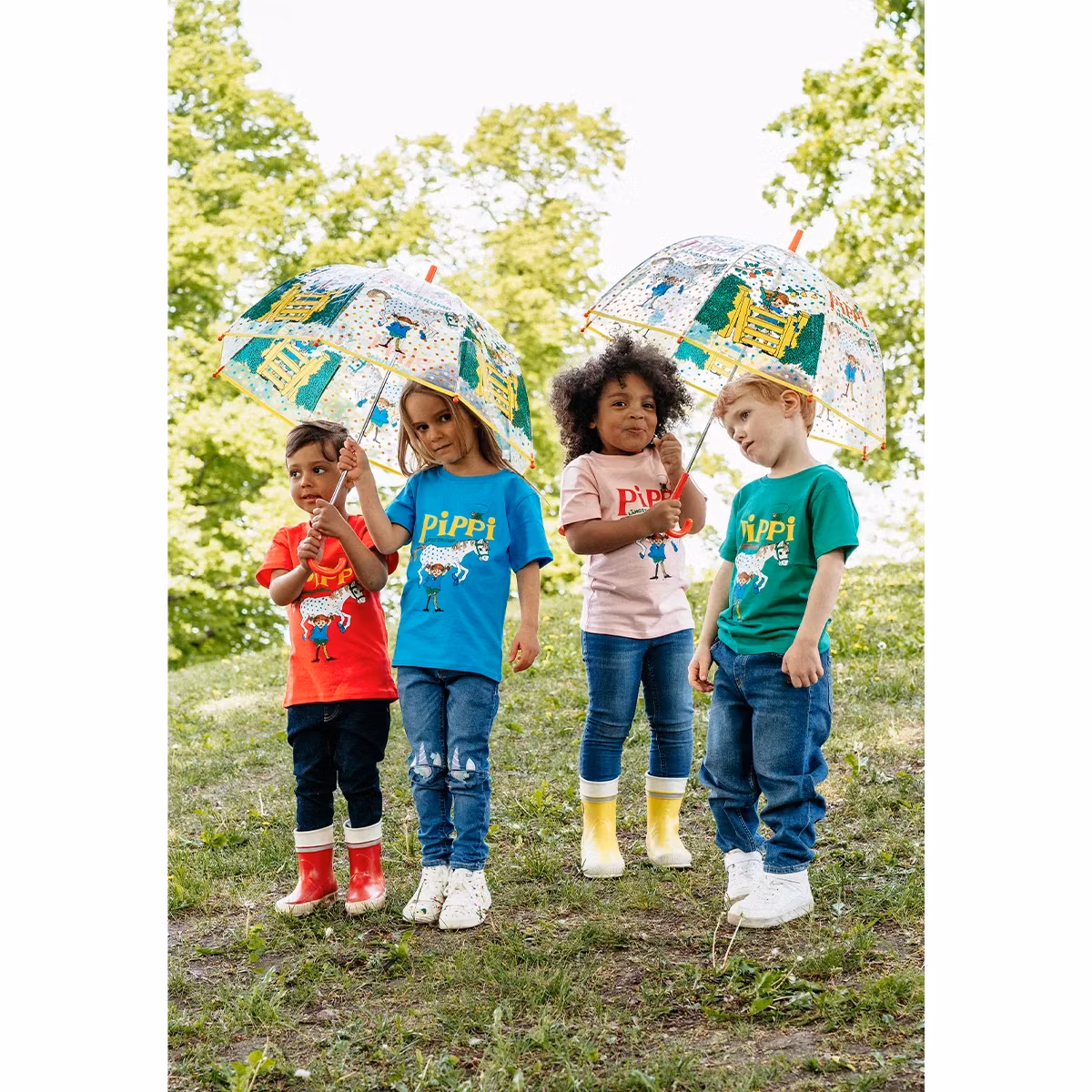 Pippi Långstrump står det i stora, glada bokstäver, med Herr Nilsson som lyfter upp Lilla Gubben lätt som en plätt med raka armar. En färgglad härlig tröja som passar både tjejer och killar.