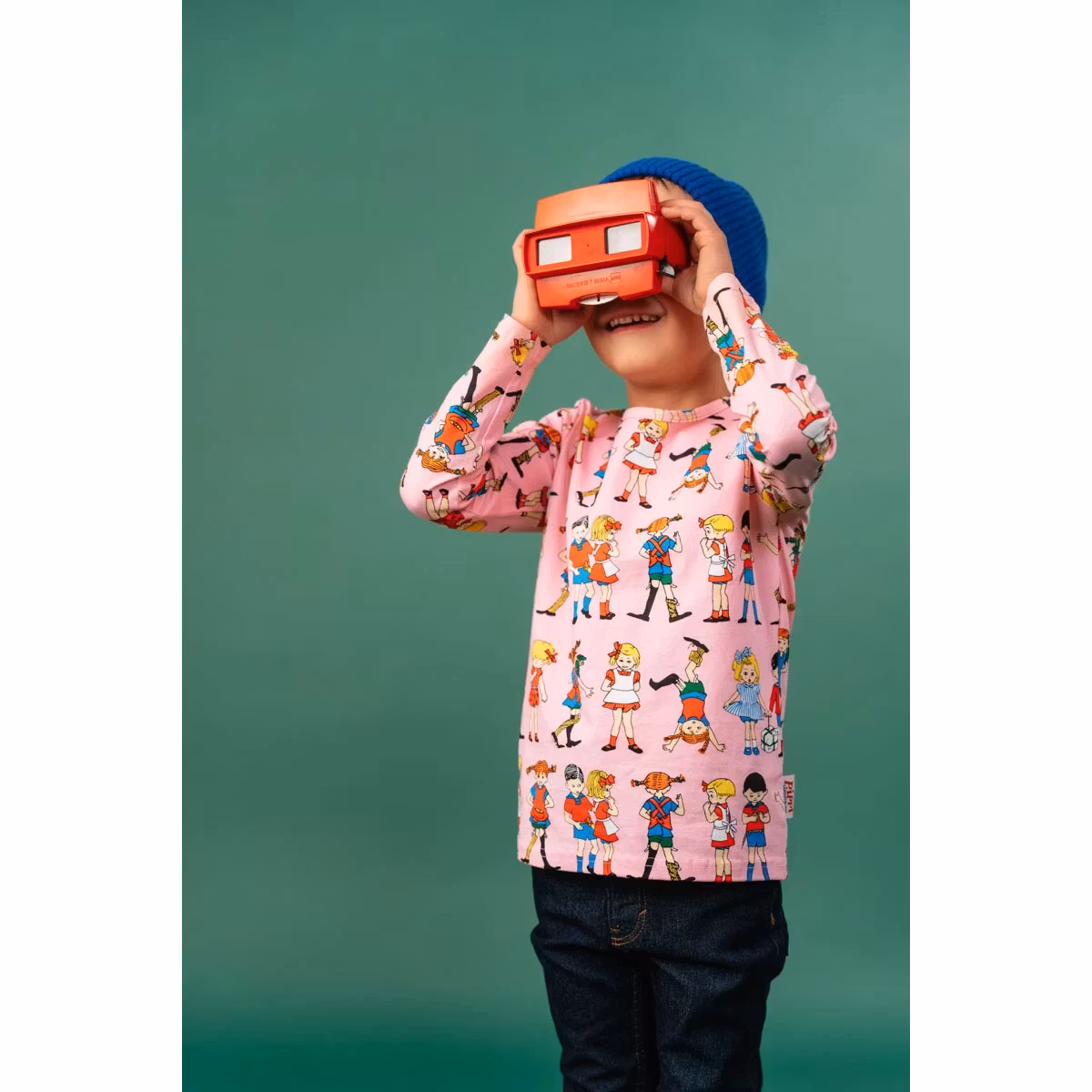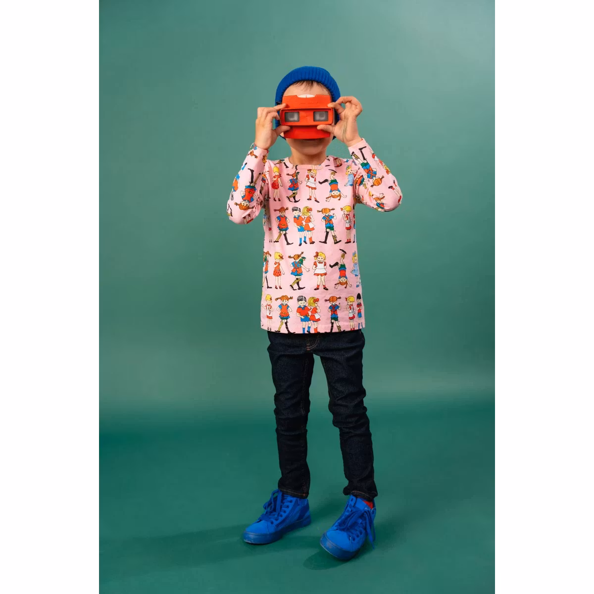 En mjuk och skön Pippi Långstrump tröja för barn. Rak modell med lång ärm och rund halsringning. Produkten innehåller certifierad ekologisk bomull.