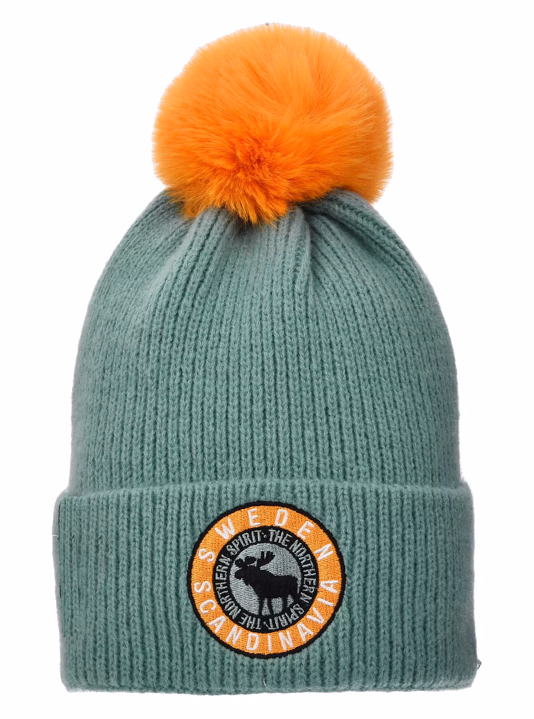 Mössan har en uppvikt kant med patch framtill som pryds av ett Skandinavien-inspirerat motiv. Den stora orangea tofsen ger en lekfull och modern touch.