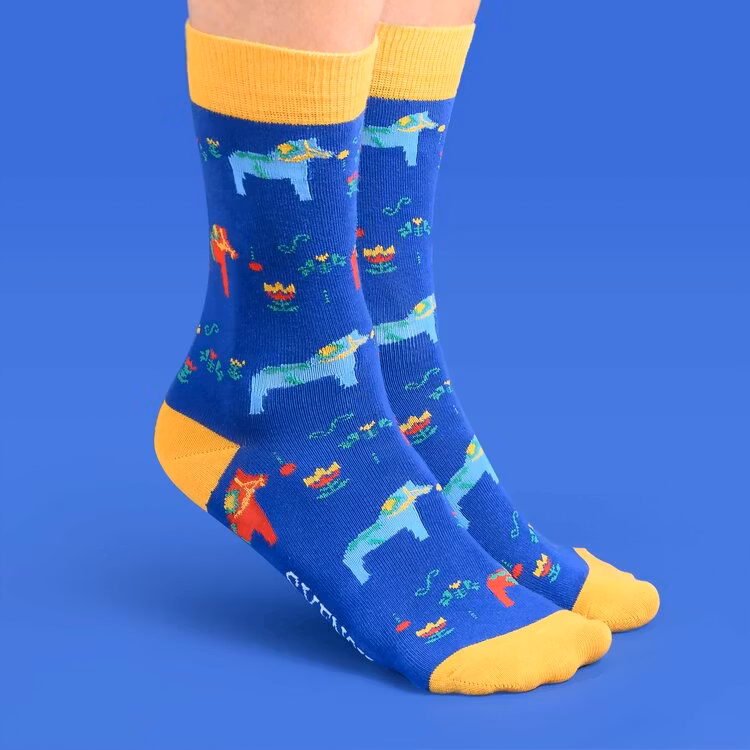 Strumpor: Dalahäst blå Unisex