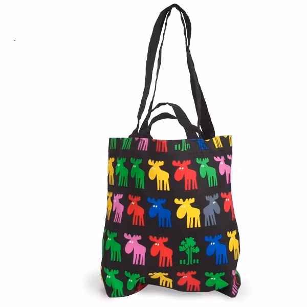 En tjock och stark tygpåse med älgmotiv på båda sidor. Säg adjö till plastpåsar så lägg dina godsaker i denna 100% bomull och kraftiga tygpåse. Det finns mer än tillräckligt med utrymme för livsmedel, böcker och med mera med lagom storlek till din vardag, att ta med sig precis överallt.