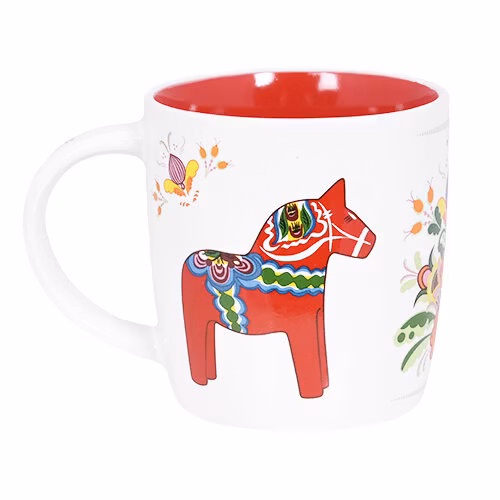 Stilren mugg med det populära motivet "Dalahäst". En av våra absoluta storsäljare!