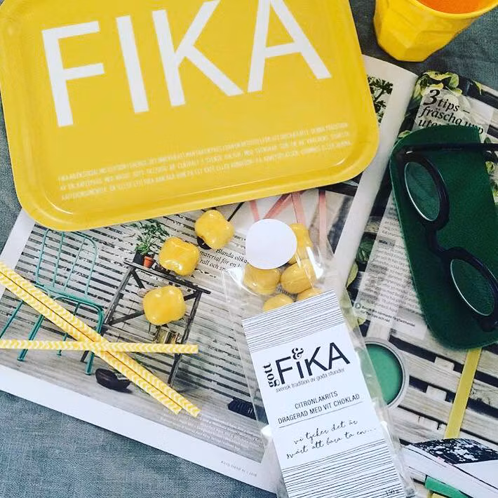 Brickan ingår i FIKA-serien och finns i flera olika färger, med engelsk eller svensk text.