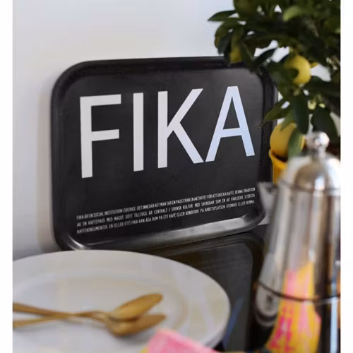 Brickan ingår i FIKA-serien och finns i flera olika färger, med engelsk eller svensk text.