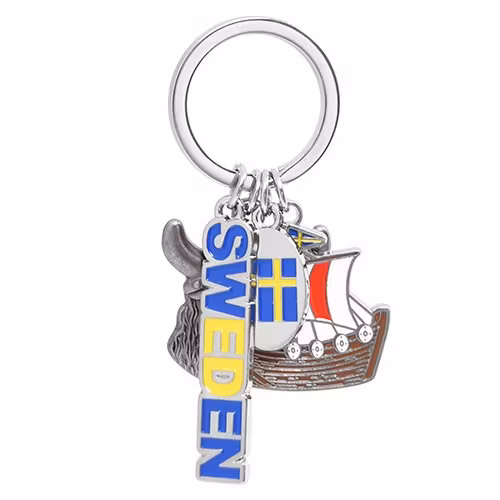 Nyckelring viking, vikingaskepp, Sweden 79 kr "Produkten är dessvärre tillfälligt slut i lager."“Unfortunately, the product is temporarily out of stock.”"Das Produkt ist leider vorübergehend nicht auf Lager.“ Artikelnummer: 7331133252763 Dela Information Nyckelring i metall med fyra berlocker som symboliserar Sverige.