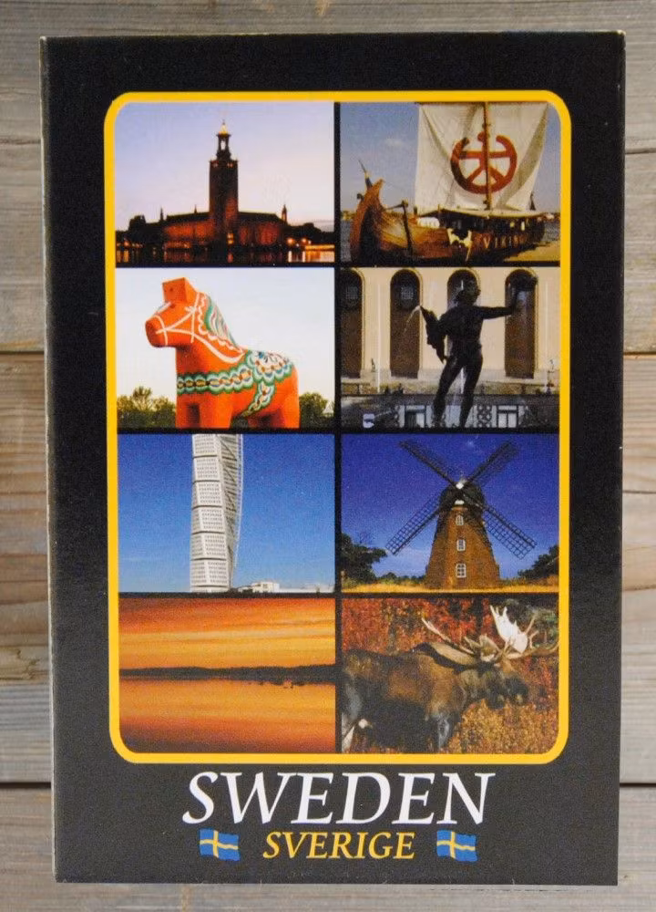 Bilder i från norr till söder, djur, natur, slott, koja, vinter, sommar, midnattssol, dalahäst, vikingaskepp och mycket mer. Hela Sverige i en kortlek gör den till en säljare av stora mått.