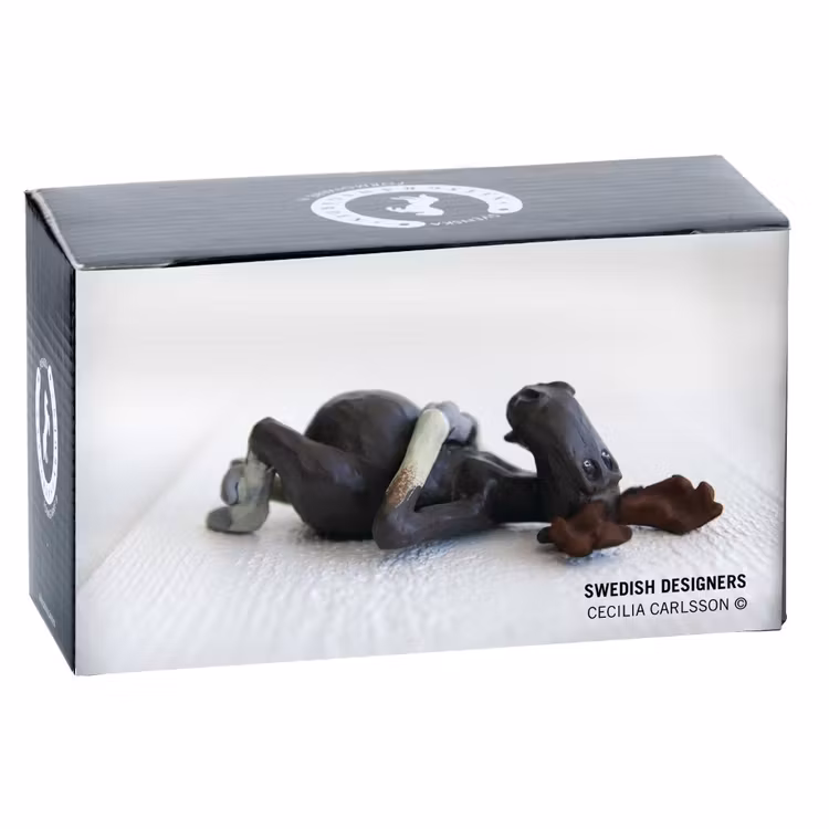 Även älgar behöver en tupplur ibland. Den här vilar extra gärna på fönsterbrädan, i bokhyllan eller på soffbordet. Varje älg är handmålad. Designad av Svensk formgivaren Cecilia Carlsson. Nääsgränsgården