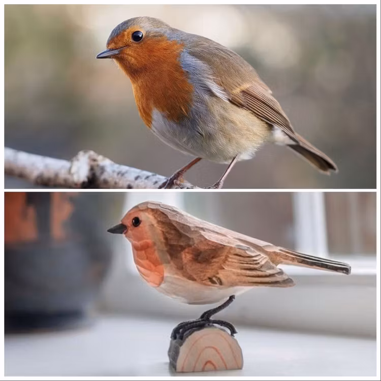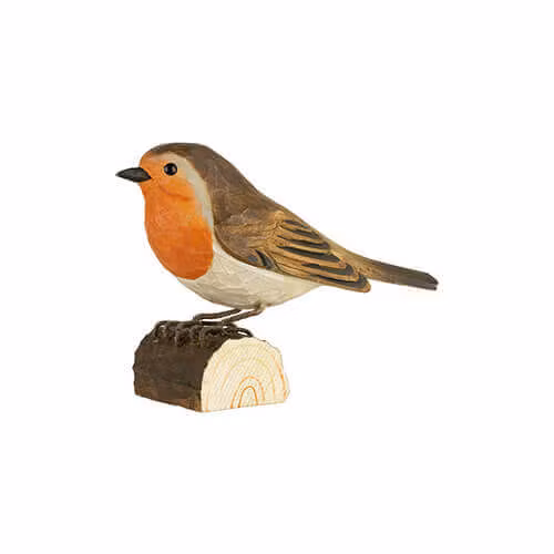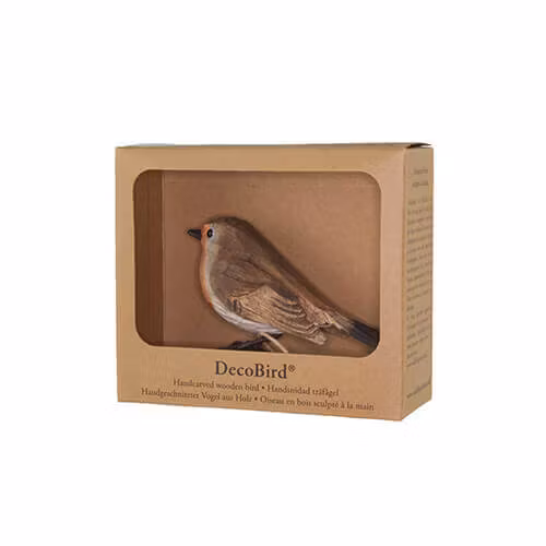 Rödhake är en naturtrogen träfågel som är snidad och målad för hand. Alla fåglar i samlarserien DecoBirds är täljda i lindträ och målad med miljövänliga färger. De kan placeras inne eller ute. Den kommer i en displaykartong med fönster och med varje fågel kommer ett litet häfte med information om arten.