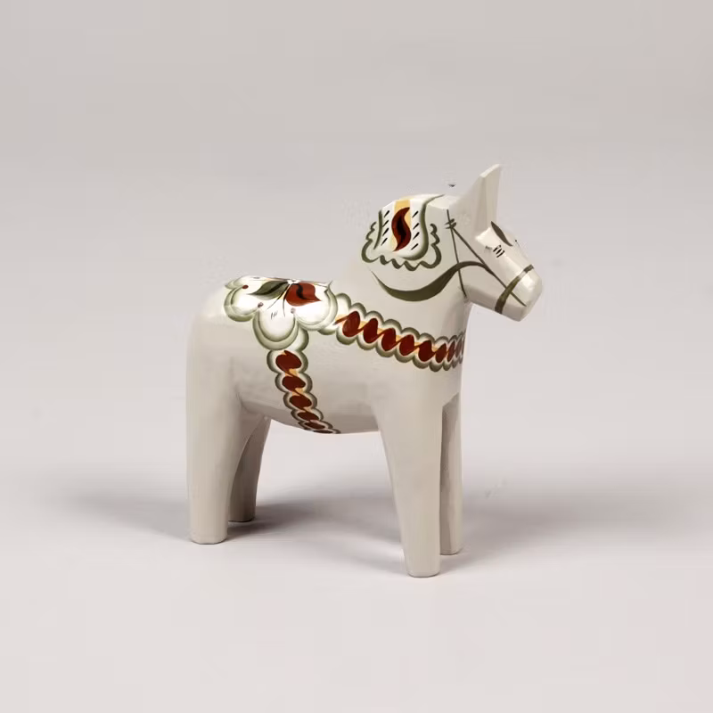 ENGLISH: Are you looking for a classic Dala horse for yourself or looking for a unique gift for someone you like? Today, the original is manufactured in the village of Nusnäs outside Mora in Sweden. Each Dala horse is carved and painted by hand and comes in all possible colors and shapes with its own stamp. The hand-painted decor can vary slightly in color combination and appearance between the horses.